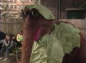 Mr. Snuffleupagus as a cabbage | Snuffy portrays his favorite vegetable in a pageant during a street storyline focusing on gardening. | |