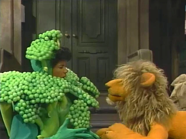 Wanda Cousteau as a piece of broccoli | Sesame Street Episode 3161 | Big Bird helps Wanda disguise herself as a piece of broccoli to evade Wolfgang (but attracting the attention of Chicago instead). |