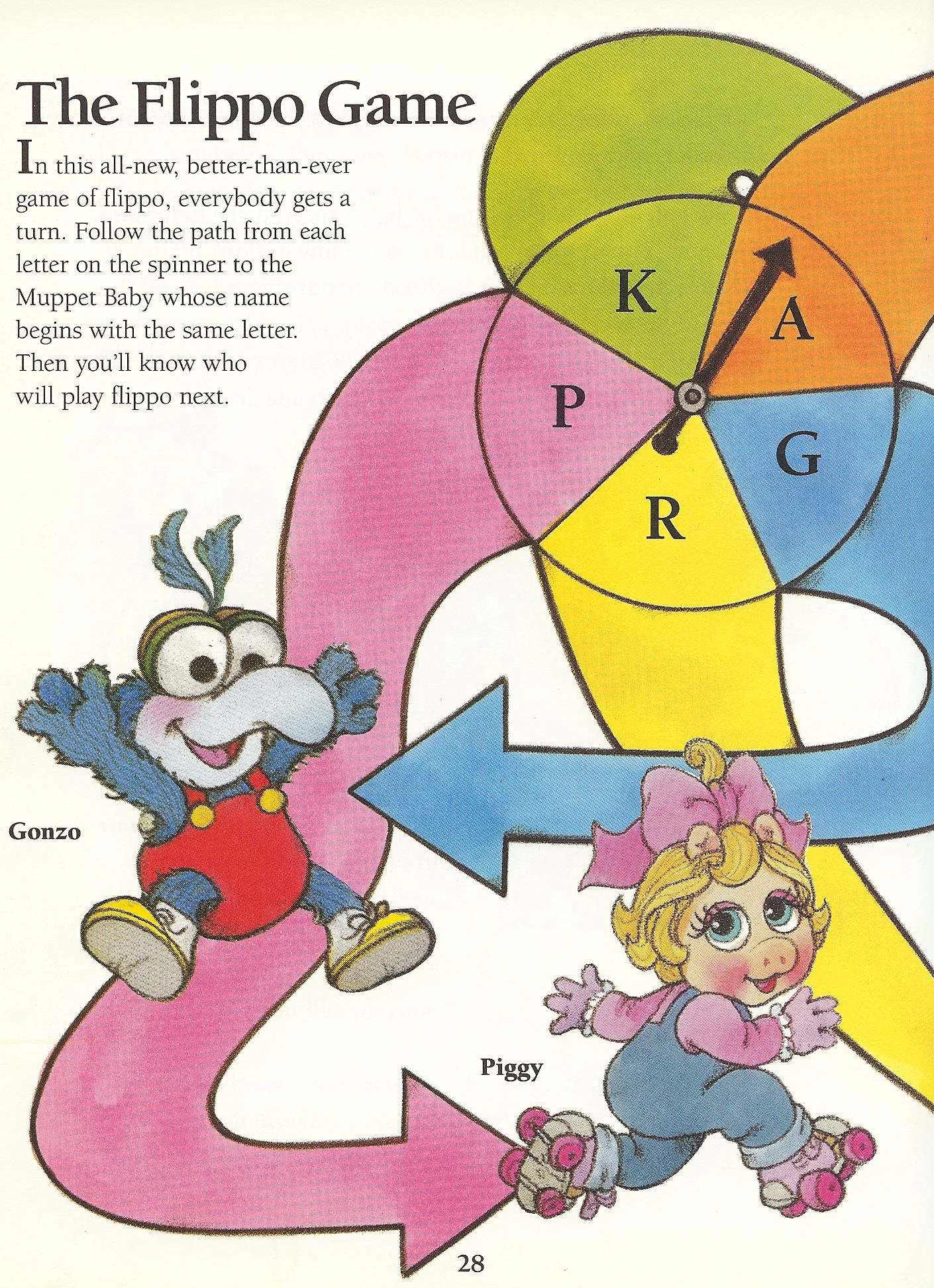 The rules are simple: the player needs to complete a double back flip in order to spin the dial and move their pawn. Unbeknownst to the others, she has been practicing such flips for awhile, and domineers the game. Soon the others are bored waiting for their turn, so they leave, leaving her alone. Wanting to celebrate her win, she looks around and realizes the other babies are engaged in a game of "Go Fish." When she asks why they left, they explain they prefer a game where you can take turns, and deal Baby Skeeter into their card game. |