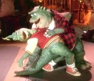 Robbie and Earl Sinclair performed it on the Dinosaurs episode "A New Leaf," gleefully uninhibited by their ingestion of "the happy plant." They perform a complex dance, choreographed by suit performers Bill Barretta and Leif Tilden.