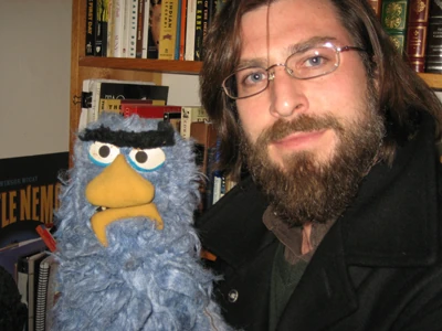 Jonathan Frith with the "Beautiful Day" puppet he made at age twelve at the Muppet Shop.