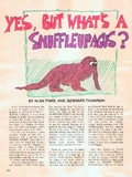 Issue #20 included a behind-the-scenes article on Sesame Street, titled "Yes, but what is a Snuffleugapus (sic) or creating the illusion of Sesame Street". The article featured behind-the-scenes photos of the unaired version of "Imagination", as well as some drawings of characters, including Big Bird (showing how he is performed), Sam the Robot, and Mr. Snuffleupagus.