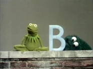 Kermit the Frog tries to present a lecture about the letter B, but Cookie Monster eats the bottom of the B and turns it into an R. Kermit talks about the R, but then Cookie Monster snacks some more, and makes it a P. Kermit tries to go on, but the monster keeps eating, making it into an F, and then an I, and then nothing at all. Kermit chides Cookie Monster for ruining his lesson. Cookie Monster gives Kermit a kiss, then exits.