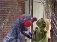 Grover is outside in the snow, freezing. He keeps knocking on Kermit's door, asking how to get warm, and Kermit keeps telling him to come inside. Grover, missing the point, tries ideas of his own to get warm, but they don't work. Finally, Kermit tells Grover that if he wants to get warm, he should come inside. Excited, Grover pulls Kermit aside, then goes in and slams the door, locking Kermit out. Grover goes to sleep in Kermit's armchair while the frozen frog scrapes at the window.