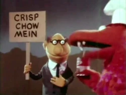 A suburban mother and her Cub Scout son meet the Dragon in a supermarket, where Delbert ends up destroying the store as he promotes La Choy chow mein and noodles. The human cast for this commercial consisted of Beverley Owen as the mother, Phil Grab as the store clerk, and Patrick Ostonic as the Cub Scout. A clip from this spot was used in The Muppets: A Celebration of 30 Years. |
