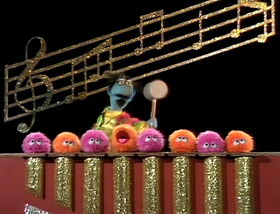 Marvin Suggs and his Muppaphone perform "Lady of Spain" in episode 105 of The Muppet Show. In their first appearance on the show, Marvin Suggs introduces his Muppaphone and then "tunes" them by running through a scale. The song is performed by Marvin hitting the Muppaphones in sequence with his mallet; they say "ow!" at the appropriate pitch to create the melody. The number ends with a giant mallet appearing from the wings to hit Marvin on the head.