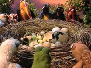 The song ends with the various animals standing around a nest, cooing as they watch a wide variety of eggs hatching. The animals don't seem concerned that some of the proud parents gathered are predators, some are prey, and one is from a different epoch of Earth's history.
