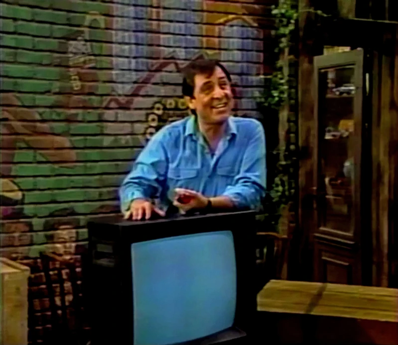 SCENE 1 | Big Bird tells the player that Snuffy has a surprise that involves his Snuffleupagus-sized portable television set, which turns out to be the size of a regular TV (Snuffy: "You oughta see the console we have at home!"). Luis hooks up the video console which includes the controller used on the Interactive-Vision. Luis tells them that they might have more fun figuring out how to use it themselves, and leaves them with the instruction manual. |