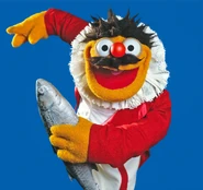 In Muppets Haunted Mansion, he is seen wearing an arrow headband in the party while one of his fish, Alberta, is dressed as him. He also plays one of Constance Hatchaway's husbands. His costume matches that of Reginald Caine, the fourth husband in the attraction.