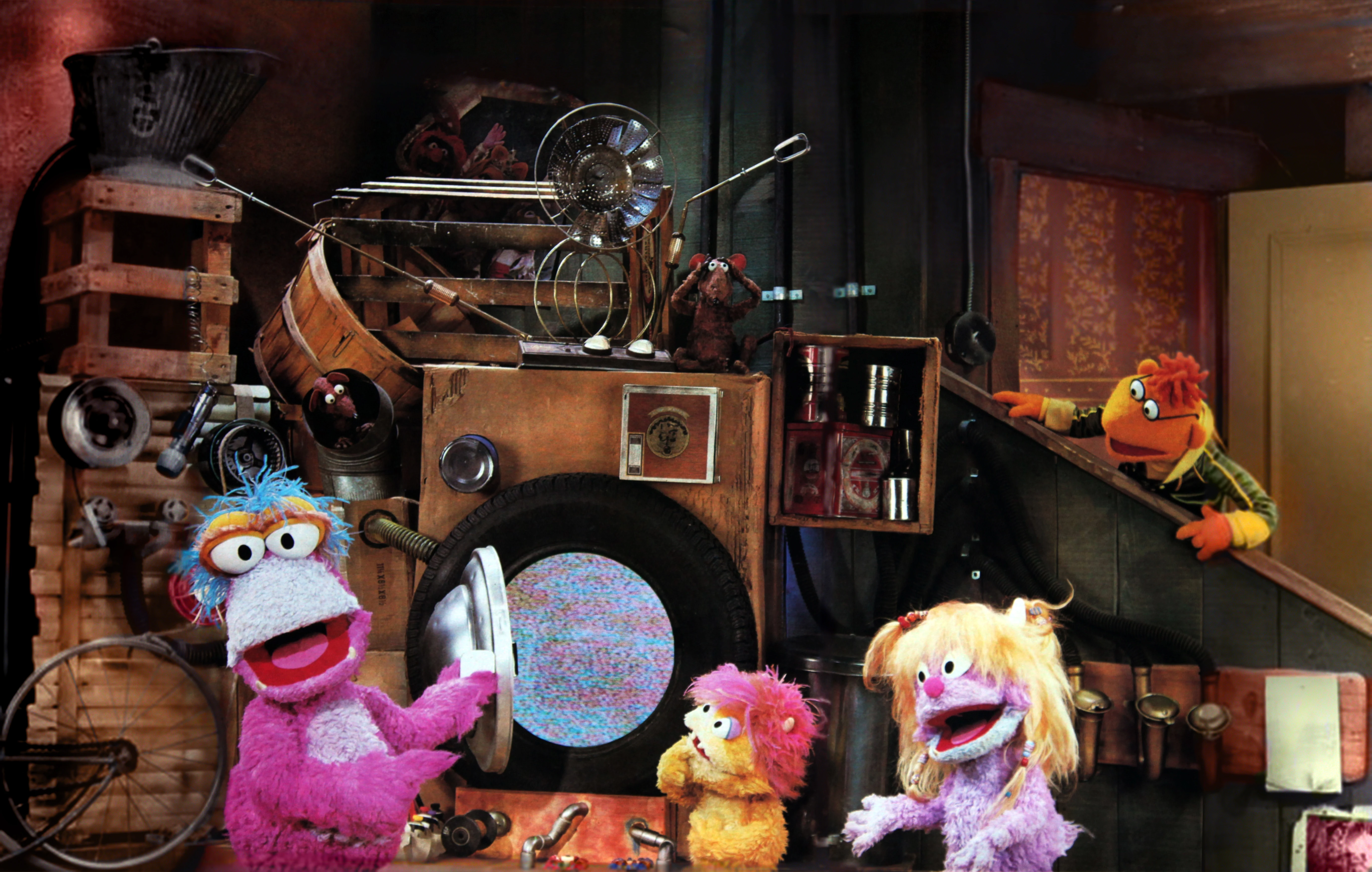 The show was anchored by three young Muppet monsters, Tug, Boo, and Molly, living with Muppet rats, penguins and other characters. Muppet Show characters such as Scooter, Kermit, Janice, and Floyd appeared in cameos. The Electric Mayhem were featured in both intros watching the show on television, as they excitedly bounced about on a living room sofa. Miss Piggy also appears in the intro.