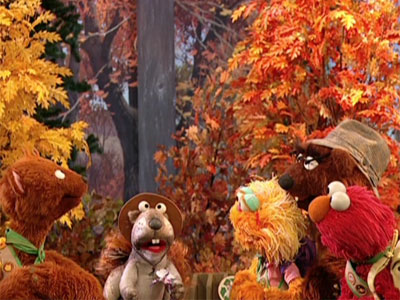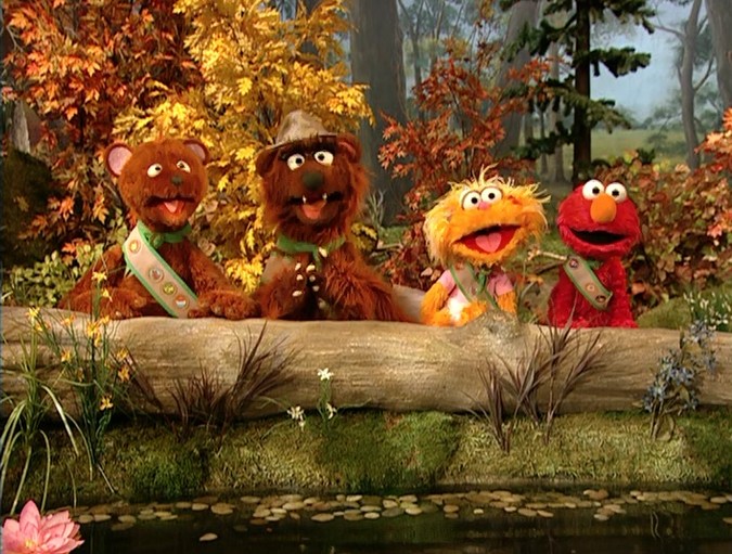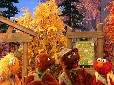 FRAME 1 | Papa Bear takes Bear Scouts Elmo, Zoe and Baby Bear to Bear National Park so they can earn their Birdwatching Badge and become Grizzly Scouts. The bird they're after is the elusive Blue-Feathered Swallowing Swallow. As they enter, they take in the beautiful scenery. |