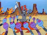 "Lucky Thirteen" is a Sesame Street song segment animated by Loring Doyle.[1] A mouse (voiced by Jerry Nelson) riding an armadillo in the western desert sings about the number 13.