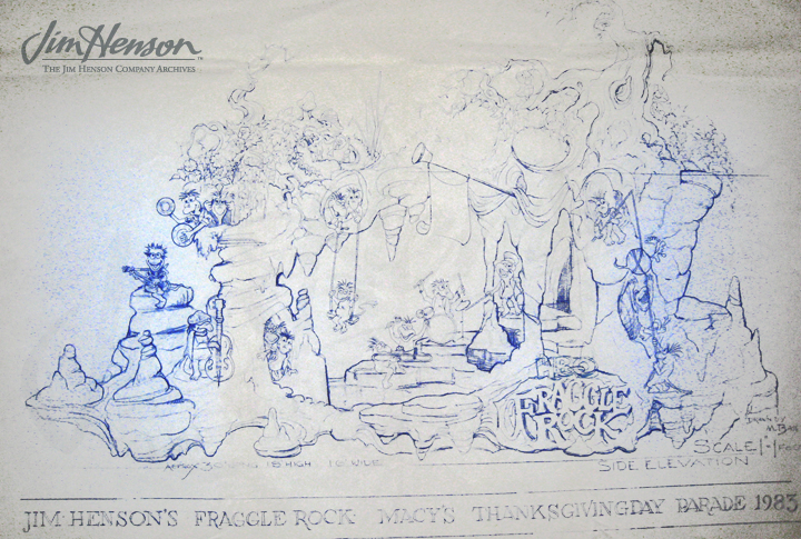A Fraggle Rock float appeared in the Parade in 1983[1] and 1984.[42] The float was primarily a lavish Fraggle cave set, with a set based on the Gorgs' garden above. The main Fraggle cast (Gobo, Wembly, Mokey, Boober, Red, and Uncle Traveling Matt) were featured, along with various other Fraggles (including two Fraggles balanced on a seesaw).