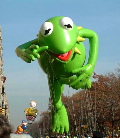 - Kermit the Frog made reference to his balloon incarnation by performing an impression of himself in the Thanksgiving Day parade on Muppets.com in the video "Take Three!"