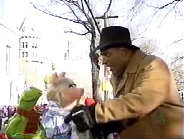 In 1994, Kermit the Frog was named the parade's "Holiday Ambassador." Costumed versions of him and Miss Piggy were seen during the parade, riding in a horse-drawn carriage (underscored by "It Feels Like Christmas").