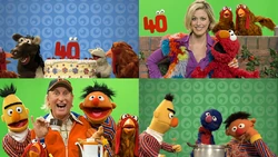 Sesamstrasse (2012) (First: Folge 2672) Performed by the characters of Sesamstrasse (Wolle, Pferd, Grobi, Ernie, Bert, Elmo, Günni, Finchen, Krümelmonster, the green Wolf, two Chickens and a number 40) and German celebrities with ties to the show (Julia Stinshoff, Otto Waalkes, Annette Frier and Gustav Peter Wöhler). |