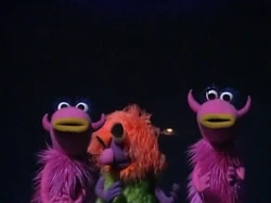 Sesame Street (First: Episode 0014) The earliest version of the skit was first performed on Episode 0014 of Sesame Street by the Anything Muppets (airing just three days before its more famous rendition; see immediately following). Whereas the Snowths sing "do doo, do doo doo" in the Muppet version, the back-up singers on the Sesame Street version sing "pa tee, pa tee pee." This version begins with the two girls (one voiced by Loretta Long) wanting to sing a song, before a male vocalist appears saying "Mah Na Mah Na." Although unrealized on screen, the script includes more of an exchange between the Anything Muppets. As written, the male Muppet enters the scene as the girls are warming up their voices and expresses his interest in joining. The girls reluctantly agree, telling him he gets to sing only the "mah-na mah-na" part, but he wants to scat a bit more by adding some "scooby-doo," "fiddle-dee-bam-bam," or "a little wah-doo" once in awhile. They refuse and he agrees, but (as in the aired version) he still deviates, to the girls' disapproval. |