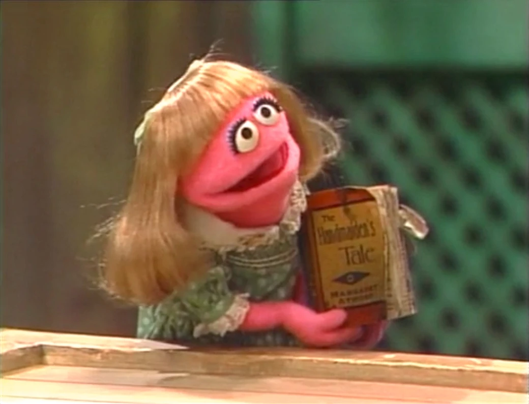 - Prairie Dawn's favorite book, as seen in Episode 3079 of Sesame Street, is The Handmaid's Tale (though the prop book in the episode titles it "The Handmaiden's Tale").