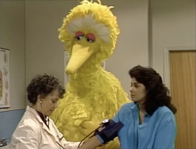 Episode 2558 Big Bird accompanies Maria to the clinic where she's getting her regular check-up to see if the baby is healthy. The doctor goes through the standard exam for a pregnant woman and shows Big Bird how she uses a special microphone to hear the baby's heartbeat. Maria is allowed to borrow the Doppler fetal monitor so that everyone back on Sesame Street can share their interpretation of the heartbeat. The sound even features in a game show hosted by Sonny Friendly, and inspires Maria to sing a song about her baby's heart beating alongside hers. |