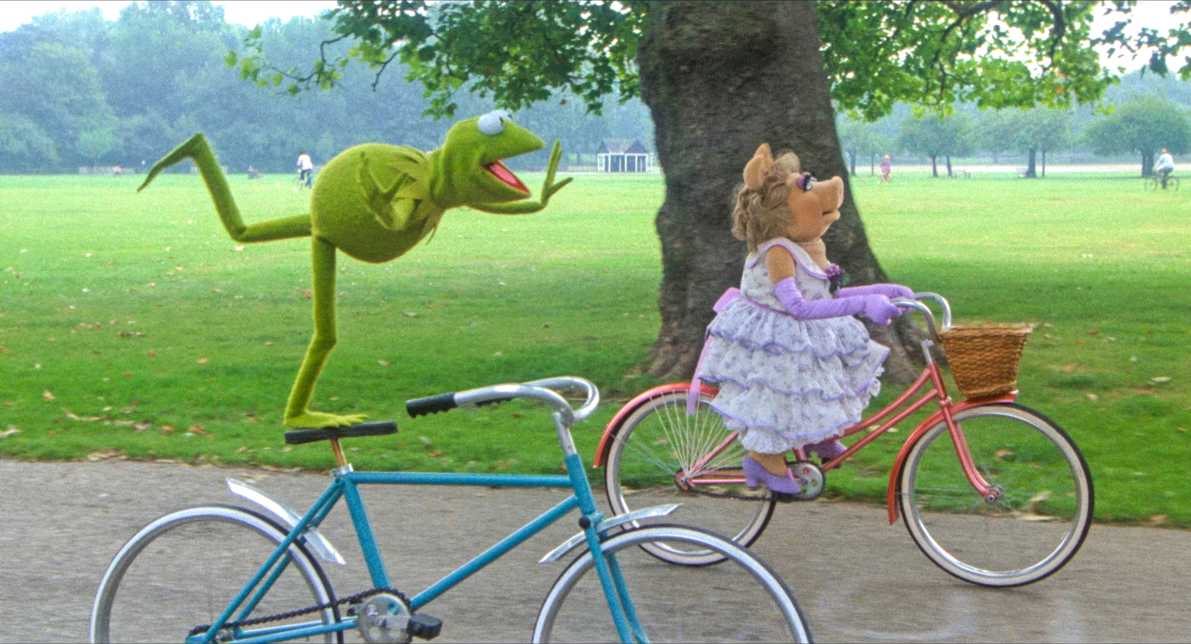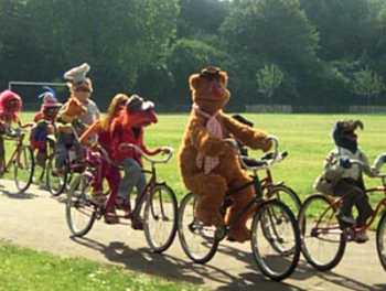 - Kermit rides his bicycle.