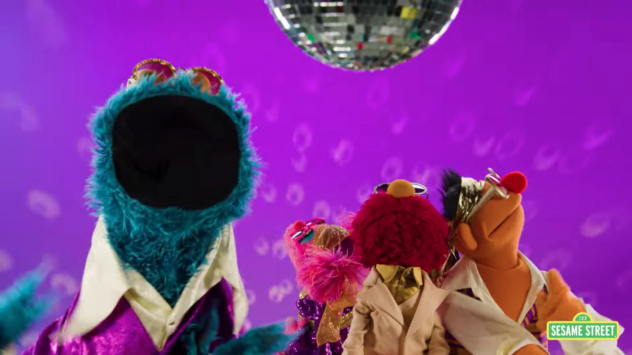 Cookie Monster sings about losing his cookie while at the disco. Various monsters in the background include Harvey Monster, Kermit the Forg, Bruce, Clancy, Maurice Monster, and an early Elmo.