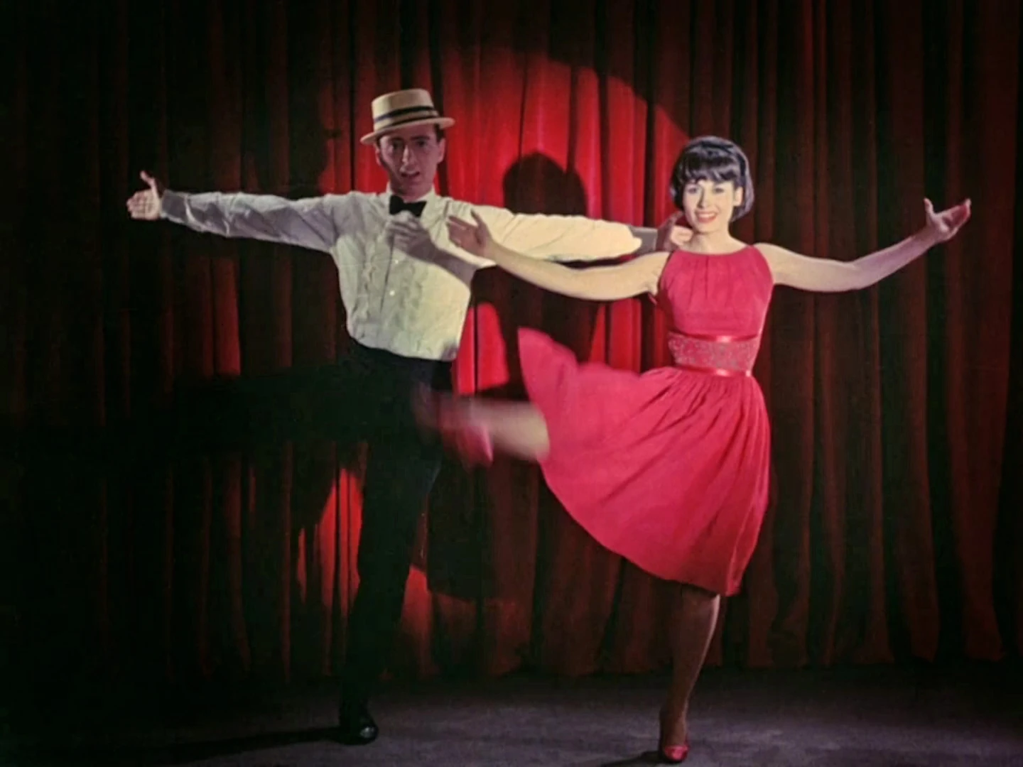 Entertainers | Prior to the performance of the stripper, a male dancer (Jim Hutchison) performs a slightly old-fashioned cabaret dance. He is later joined by a female companion, and the pair perform a few steps. This leads to a quick cut of a comic (Don Sahlin) getting a pie in the face. All of these elicit the same applause from the Man and his wife, but are mere appetizers for what is to come. |