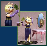 A Miss Piggy Action Figure was released in the first series of Muppet Show action figures produced by Palisades Toys as part of the show's 25th anniversary marketing campaign. Piggy's hair was sculpted up in a bun, and she wore a dark purple dress with her signature gloves.