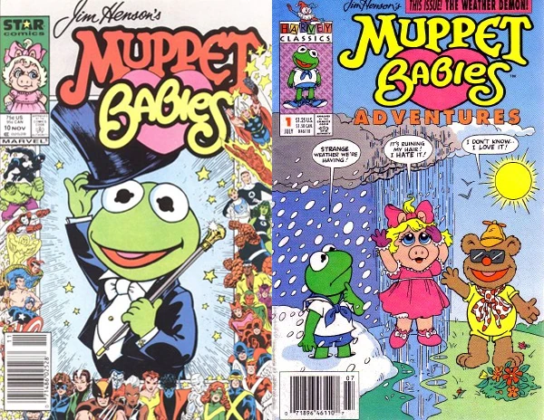 Star Comics #10 and its reprint by Harvey Comics as Muppet Babies Adventures #1.