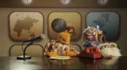 The Newsman announces that new Digital 3D movies look so real that it literally knocks people out of their seats. Not believing it, the Newsman puts some 3D glasses on and gets hit by a falling cow. | |