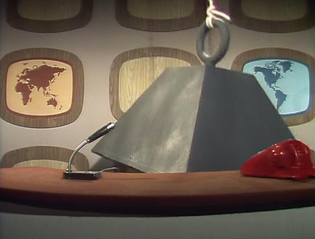The Newsman announces some breaking news only to have the set break apart and hit him on the head. | |