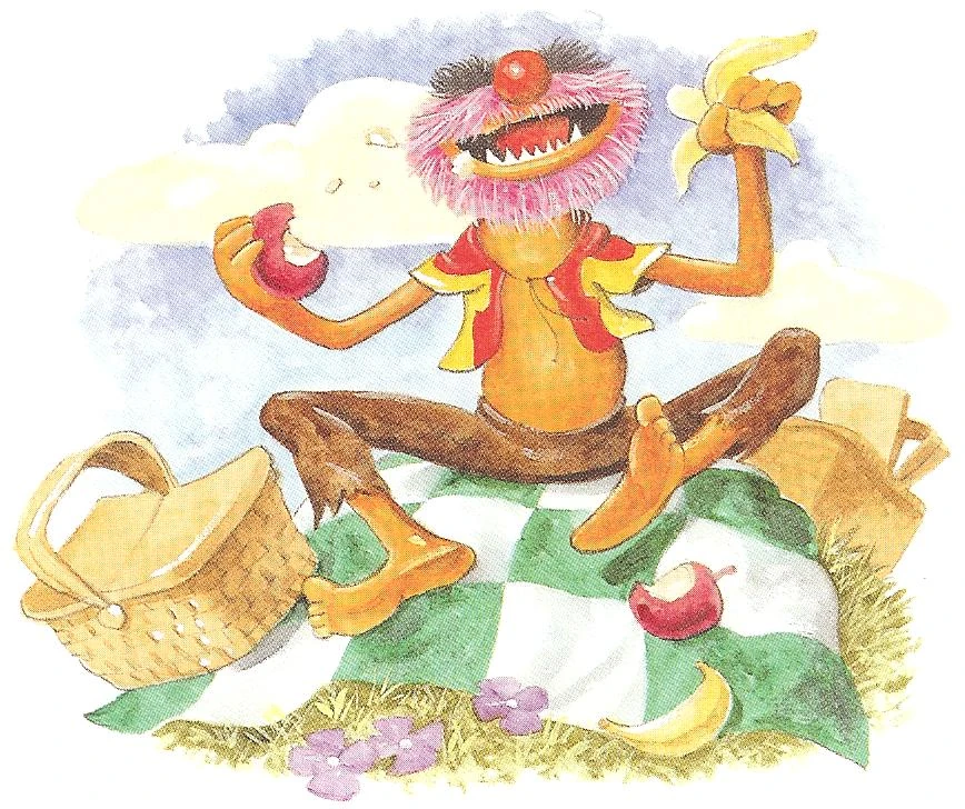 Every idea they have for finding their way out fails, as they can't fly like birds and nobody can hear them scream for help. Hungry Animal however has other things on his mind, and he soon runs through the woods, away from his friends and shouting "Food! Food!" Chasing after him, the quartet come upon him back at the picnic site, eating away and being upset, for he's polished off the last of the picnic lunch. |