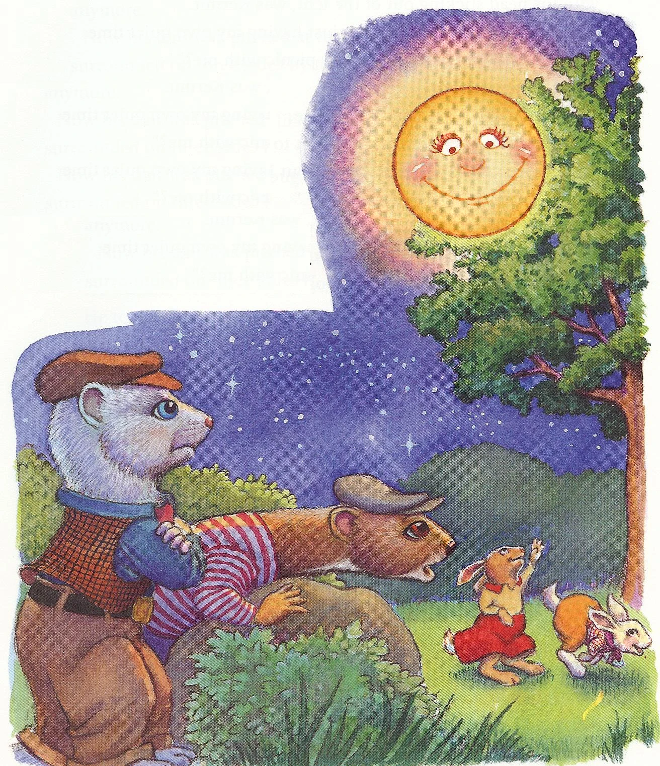 Without the moonlight, they are thrilled at the trouble they can get into without being caught, but the other animals become upset at the lack of the moon in the sky. Searching for her, they moon hears them and shines as bright as she can inside the cave, in hopes they see a glimmer of light escaping. When they do, the woodland creatures roll the stone away, and let the moon rise back into the evening sky. |