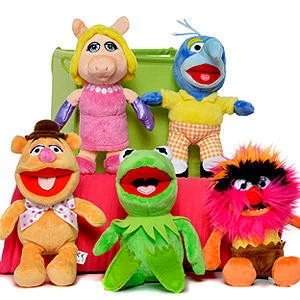 Posh Paws International, a subsidiary of the UK toy company Whitehouse Leisure, made a set of Muppet plush toys in 2012 and 2013. These were sold in Europe as a tie-in with the international release of The Muppets. The 2012 set included 10" plush dolls, 8" beanbag toys and 5" plush bag clips of Kermit the Frog, Miss Piggy, Fozzie Bear, Gonzo and Animal. In 2013, Posh Paws added a set of large plush to the line, and a new set called "Muppets Flopsies". Whitehouse Leisure also produced a plush set for UK carnival prizes in 2013 which included Statler and Waldorf.