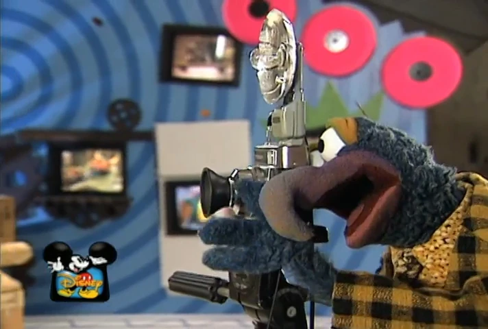 Gonzo and Rizzo (dressed as Mickey's cousin "Myron") announce that Muppets Tonight is airing weekends on Disney Channel. (YouTube) |