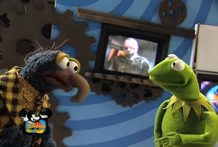 Gonzo and Kermit promote Muppets Tonight while interviewing Harold the mummy (played by Bill Fagerbakke), the star of the Disney Channel movie Under Wraps. (YouTube) |