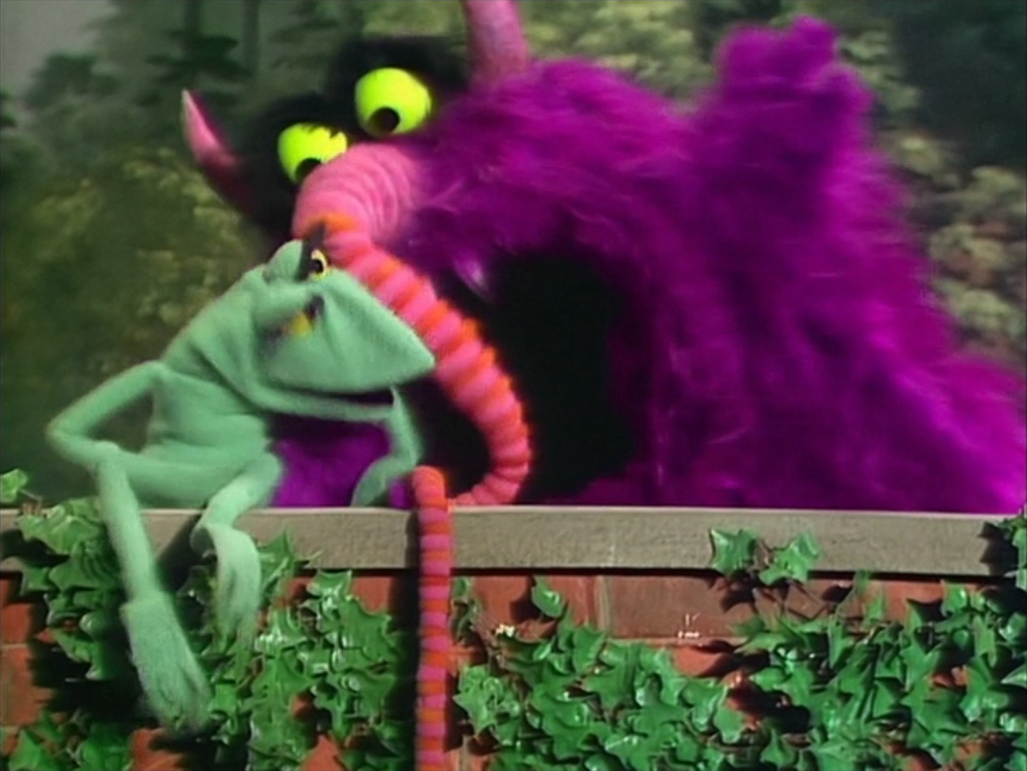 In "The Glow-Worm" sketch, which Jim Henson performed on many variety shows in the 1960s, Kermit the Frog would sit on a wall, eating passing worms. A Muppet monster would drag Kermit off the wall and then re-appear making a chewing motion, creating the illusion that Kermit was eaten whole.