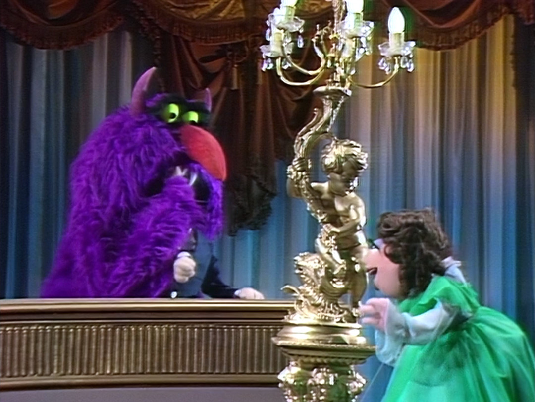 - Kermit's Stepping Stones to Success: Beautiful Day Monster threatens to eat Kermit if he doesn't shorten his speech.