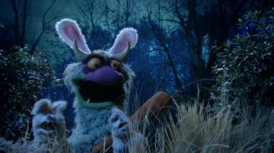 - In a TV spot for The Muppets, Behemoth has eaten Jason Segel, whose hand reaches up out of the monster's throat.