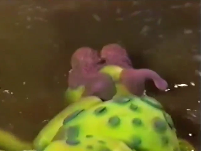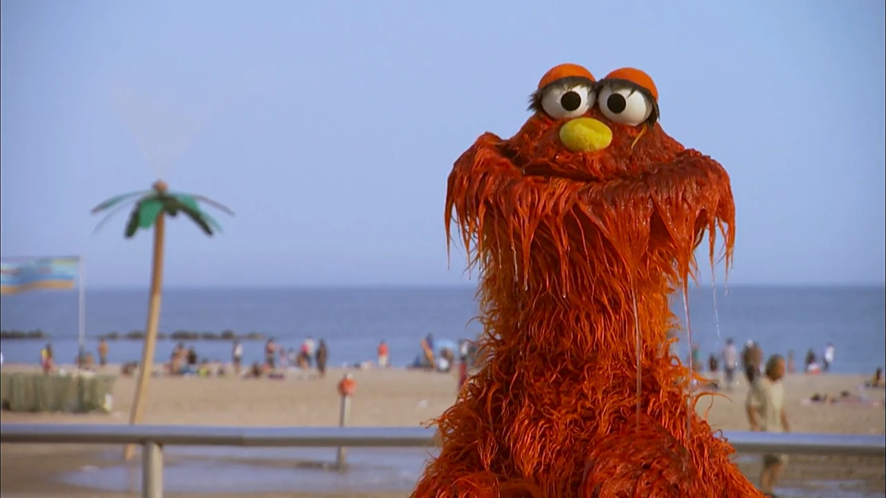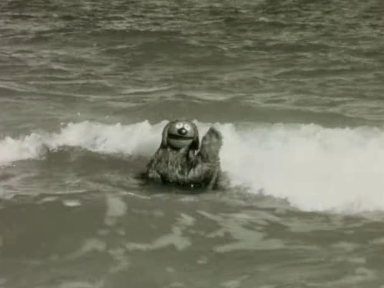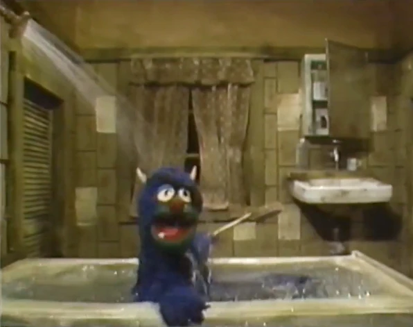 A Muppet monster is seen bathing in the "Waste Deep" PSA. |