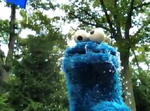 Cookie Monster dumps ice water on himself to build awareness and support the ALS Association. |