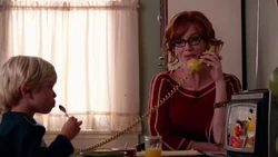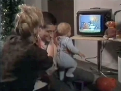 At one point in the film, the daughter is seen eating ice cream while watching Muppet Babies on TV. No recognizable characters are seen on-screen but Baby Gonzo's voice can clearly be heard announcing the arrival of his sworn enemy "Moby Duck." |