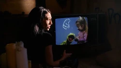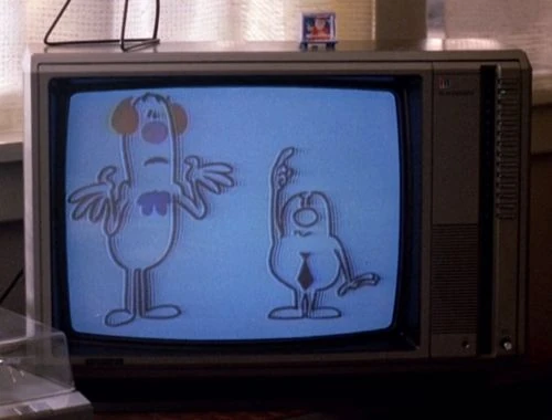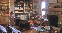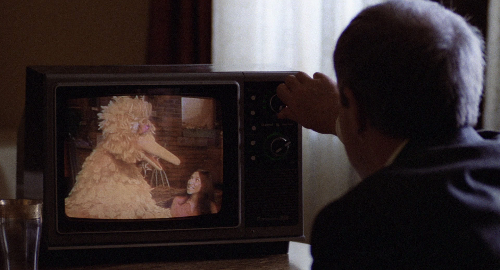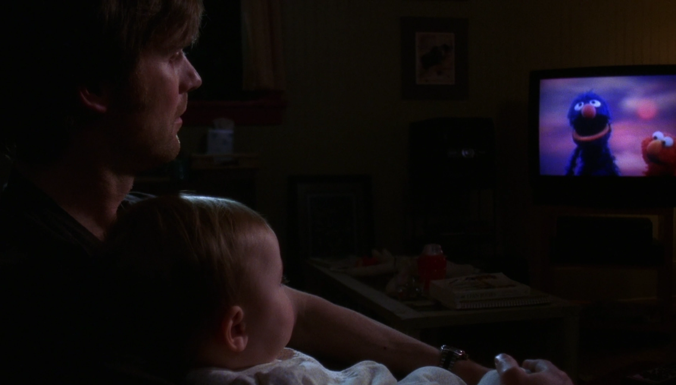 In one scene, the TV is tuned to Sesame Street -- a scene from Episode 1037, featuring Big Bird and Buffy. |