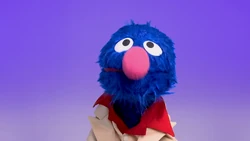 FRAME 2 | Super Grover teaches about super powers, including super strength, which he attempts to demonstrate before falling over. He talks about how you can be a hero too, before his cape covers his eyes causing him to be unaware of his surroundings. |