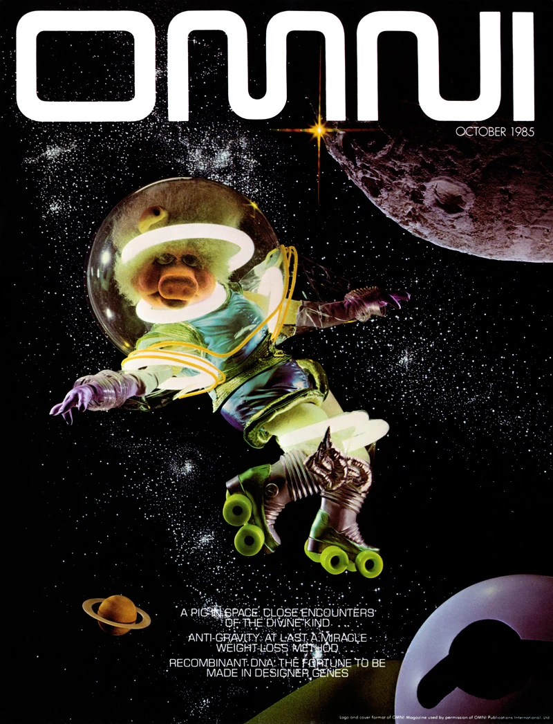 - Miss Piggy appears in a parody cover of OMNI for 1981's Cover Girl Fantasy Calendar. The calendar's August entry is titled "A Star is Launched" and features Piggy in a space suit and roller skates orbiting a giant Kermit eye.
