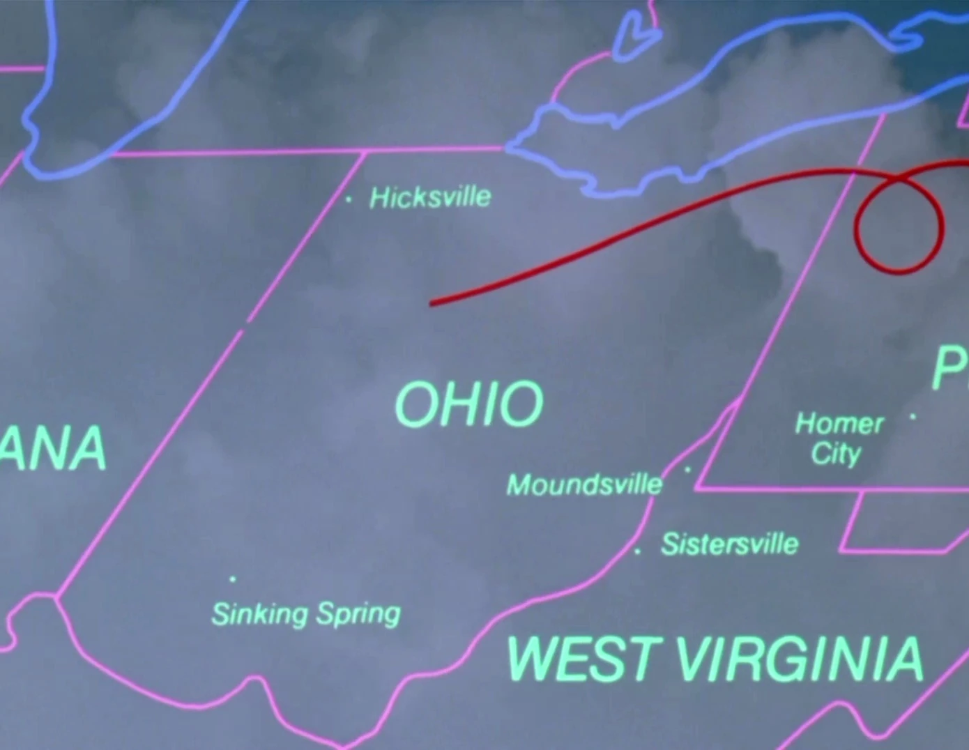 Ohio, as seen on a map in Follow That Bird.