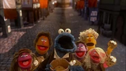 After Cookie Monster (as Jean Bon-Bon) shares his cookies with everyone, one friend (a caricature of Marius) supplies everyone with marshmallows to make s'mores as they sing the grand finale.