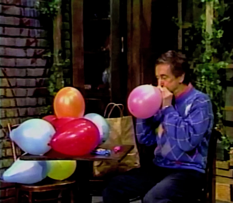 SCENE 6 | While Bob blows up the balloons for his party, Oscar runs the "Grouch Two-Plex" at his can. Two films appear above him (one about butterflies and the other about pigs), which will give more proof as to how grouchy the player is. If the player chooses the butterfly film, Oscar gives it a bad rating of "four yucks." If the pig film is selected, Oscar praises it with "four oinks." |