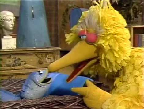 Muppets | Big Bird sings "May I Be Your Friend?" to Samantha the Eel in his nest. (First: Episode 1593) The player can press the blue button to hear Oscar's grouchy lyrics, and the red button for Big Bird's nice lyrics. |