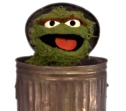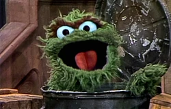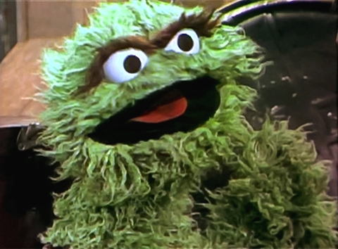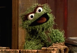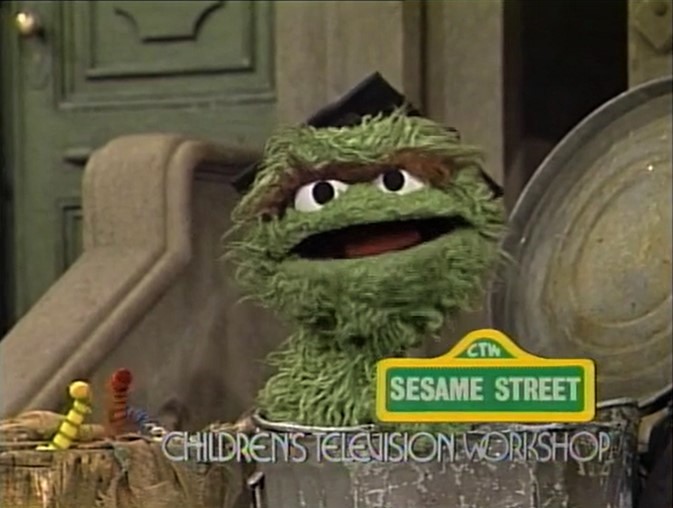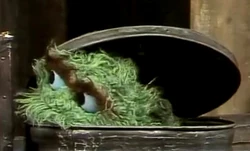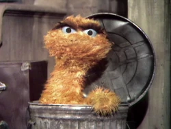 This Oscar puppet can be seen in the 2-part sketch in which Ernie loses his Rubber Duckie, as well as in several closing signs. |