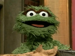 This puppet was used for Oscar in Episodes 0315, 0318, 0571, 0573 and 0603. It also appeared in the background of "C is for Cookie," the "Rainbow Connection" finale in The Muppet Movie,[1] and as a photo puppet in The Sesame Street 1974 Activity Calendar. During the 1970s and 1980s, the puppet would be recycled for other Grouches, such as Hermine, Oscar's grandpa, and his brother, Ernest. |